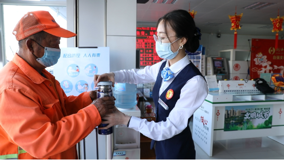 當(dāng)前我市正在開展?fàn)巹?chuàng)“全國文明城市”活動,各單位各崗位的職工都在積極行動,衡水銀行作為窗口單位在提升自身形象和服務(wù)水平的同時,力所能及的為戶外勞動者給與更多的關(guān)懷,做有溫度的銀行!